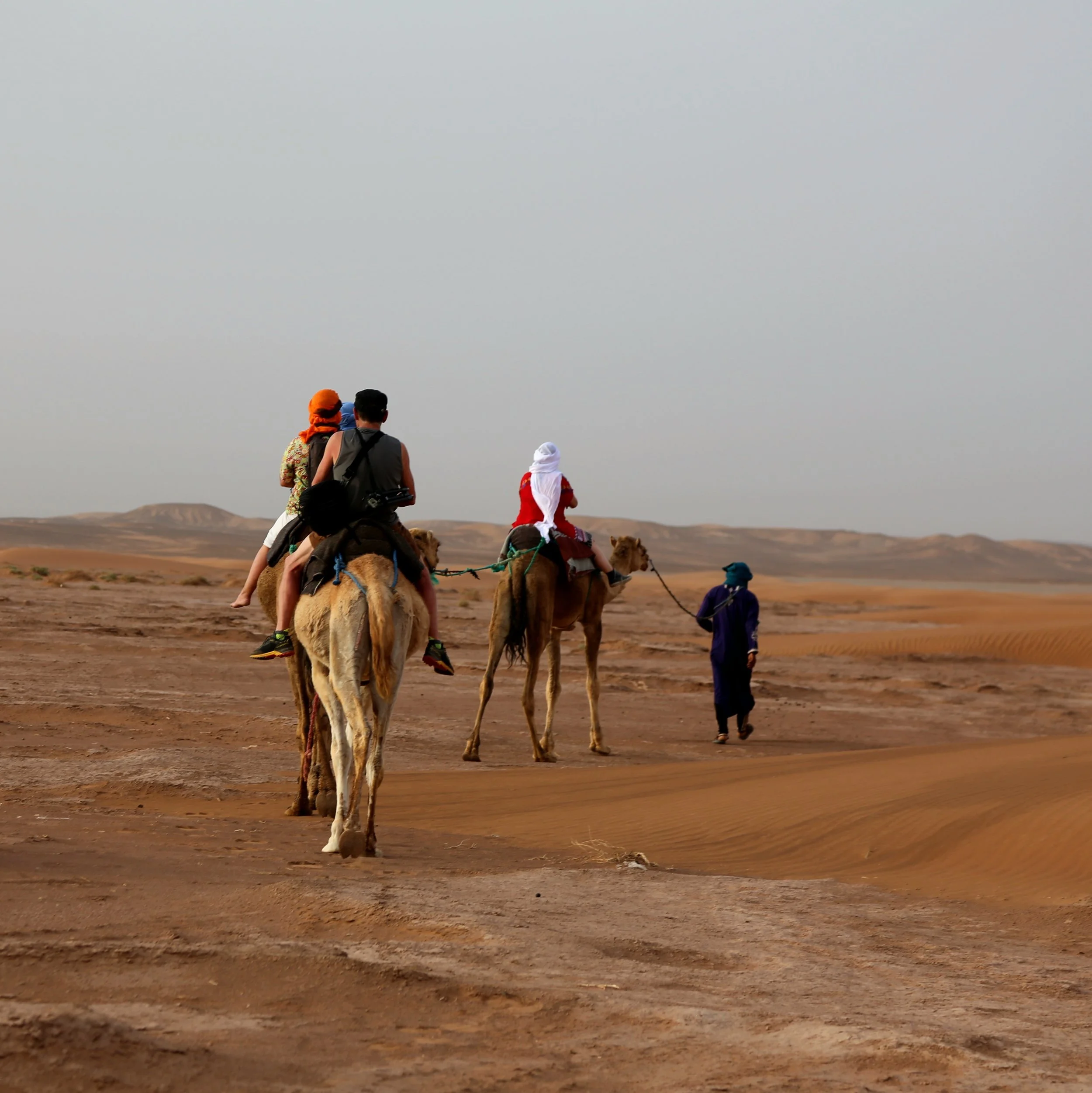 Jour 3 : Nous partirons à la découverte des magnifiques Gorges de Dadès avant de prendre la route vers le désert de M’Hamid. En fin de journée, une balade à dos de dromadaire nous mènera à travers les dunes, juste à temps pour admirer le coucher du soleil. La nuit se déroulera sous les tentes traditionnelles berbères.